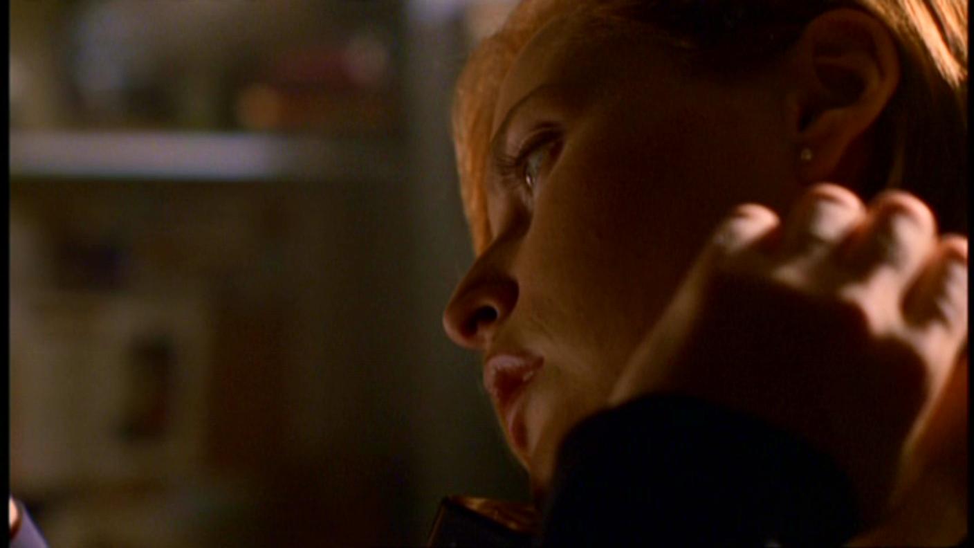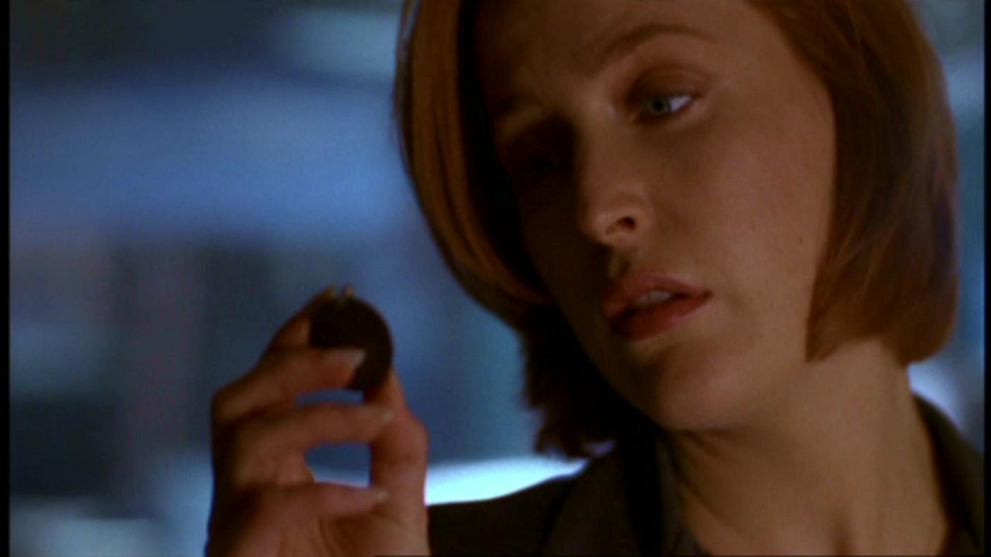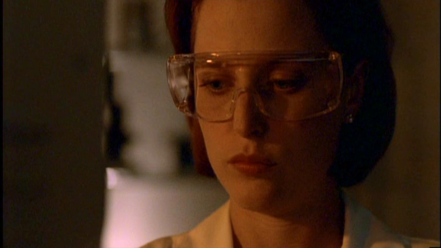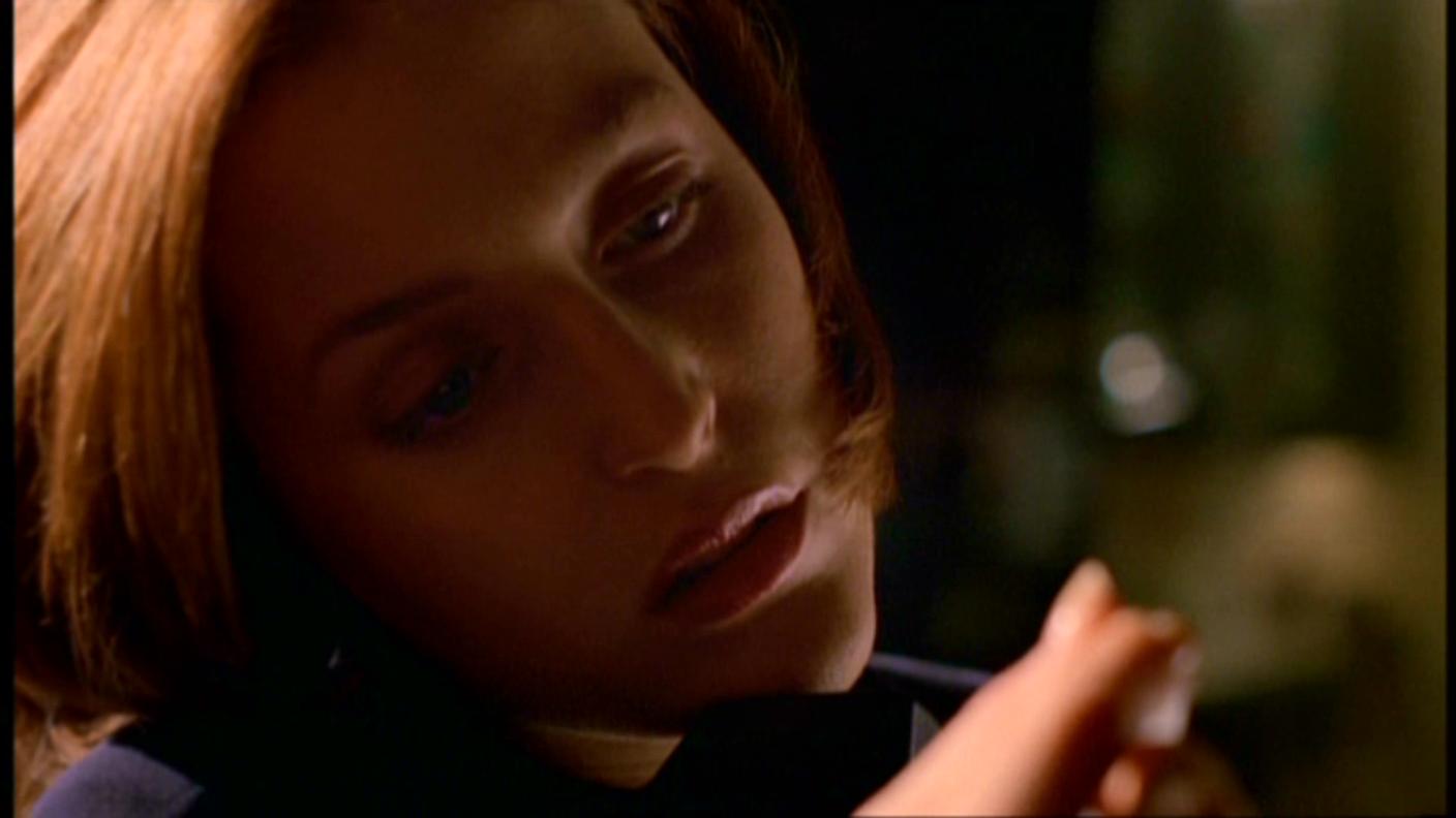 Ach, božská Scully! Ta vypadá sexy i při pitvě něčeho nechutného… Tomu se nedá odolat, abych tu nezačala pět ódy na její krásné modré oči… Vlasy barvy skořice… Jahodové rtíky… No jsem v pasti:DD