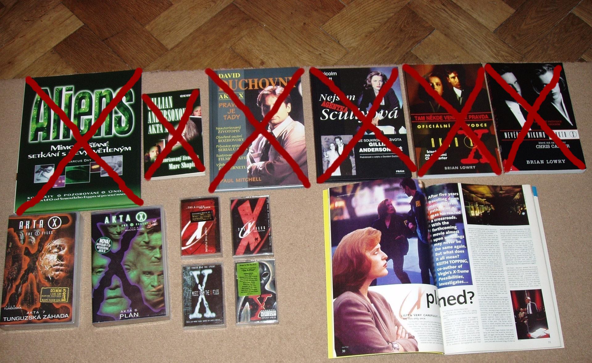 Jedna z návštěvnic našeho webu, aiydawedo, se stěhuje a při té příležitosti likviduje svoji sbírku s předměty, časopisy a knihami na téma Akta X. Rozhodla se prostřednictvím našeho webu nabídnout jednotlivé předměty ze sbírky případným zájemcům. Na obrázcích níže si můžete prohlédnout kompletní nabídku.
