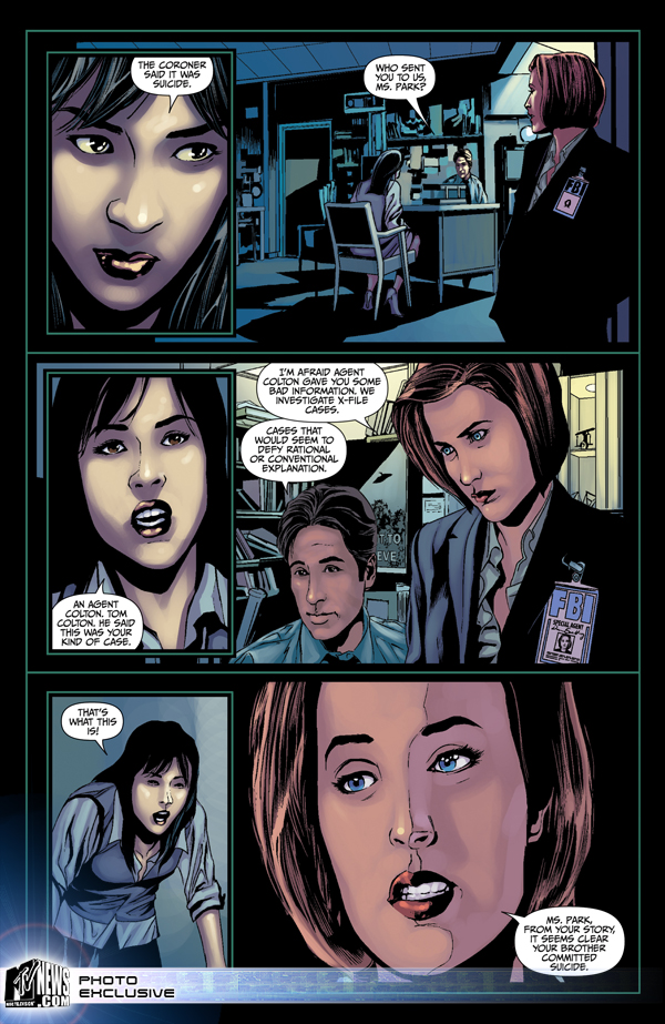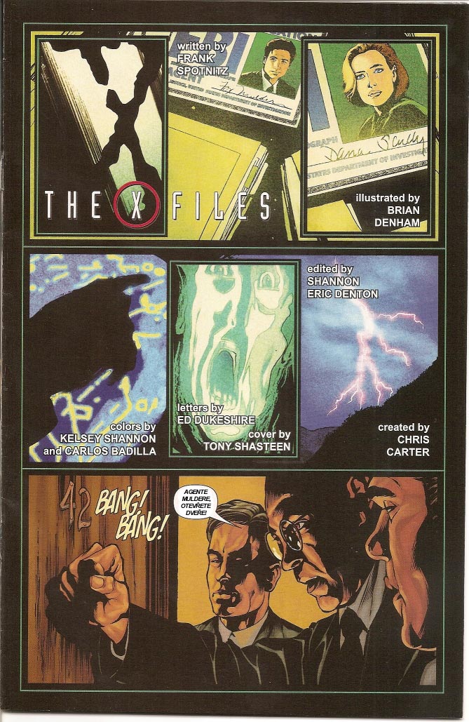 XGirl si v posledních dnech doplnila svoji bohatou sbírku zbrusu novým komiksem Akta X. Jedná se o první díl z nové série, která začala vycházet v letošním roce v souvislosti s uvedením druhého celovečerního filmu do kin. Abychom se novým přírůstkem do bohaté rodiny Akta X komiksů mohli pokochat i my ostatní, XGirl celý komiks nascanovala a všechen text přeložila do češtiny, takže si můžete vybrat ze dvou jazykových verzí – české i originální (anglické). I přesto, že se jedná o pouhé scany, při jejich čtení na mě dýchla úžasná atmosféra – a to nejen pro nejrůznější odkazy na seriál (Manners Hotel), ale také díky otevřenému konci, který tolik připomíná klasické epizody Akt X. Není se ani čemu divit, o příběh všech komiksů z nové řady se postaral Frank Spotnitz. Tímto chci XGirl poděkovat za zprostředkování veškerého materiálu, protože máme téměř stoprocentní jistotu, že u nás se nové komiksy v prodeji nikdy neobjeví (ač ve Spojených státech vesele vycházejí dál). Na závěr připomínám komiksy z devadesátých let, které u nás díky tehdejší popularitě Akt X vycházely: v minulosti jste si na Kult X mohli přečíst např. trilogii Ohnivák – Khobkův nářek, Crescit Eundo a Brief Authority. I v dalších starých ukázkách (např. zde a zde) si můžete povšimnout, jak rapidně se zvedla úroveň ztvárnění celého komiksu.