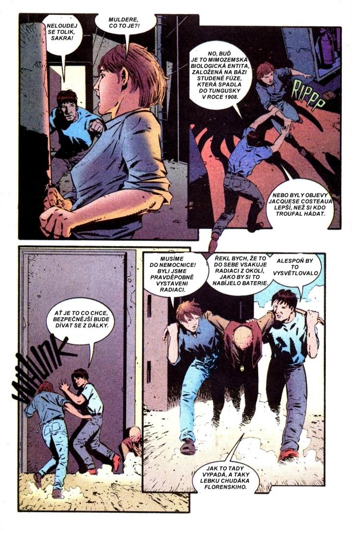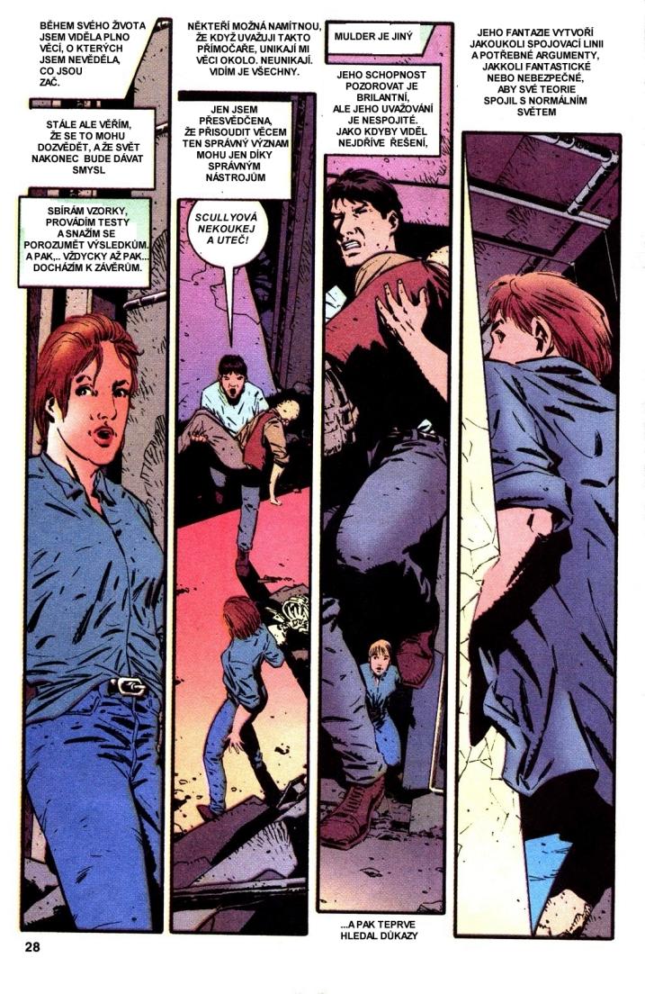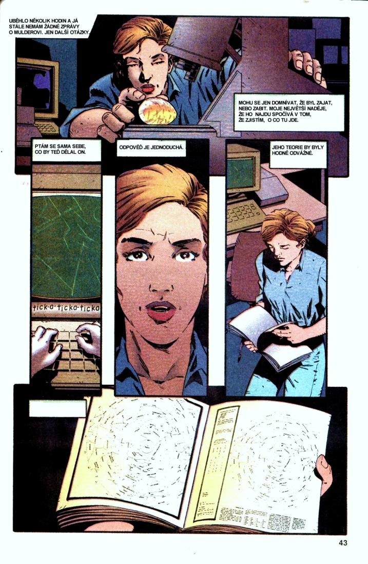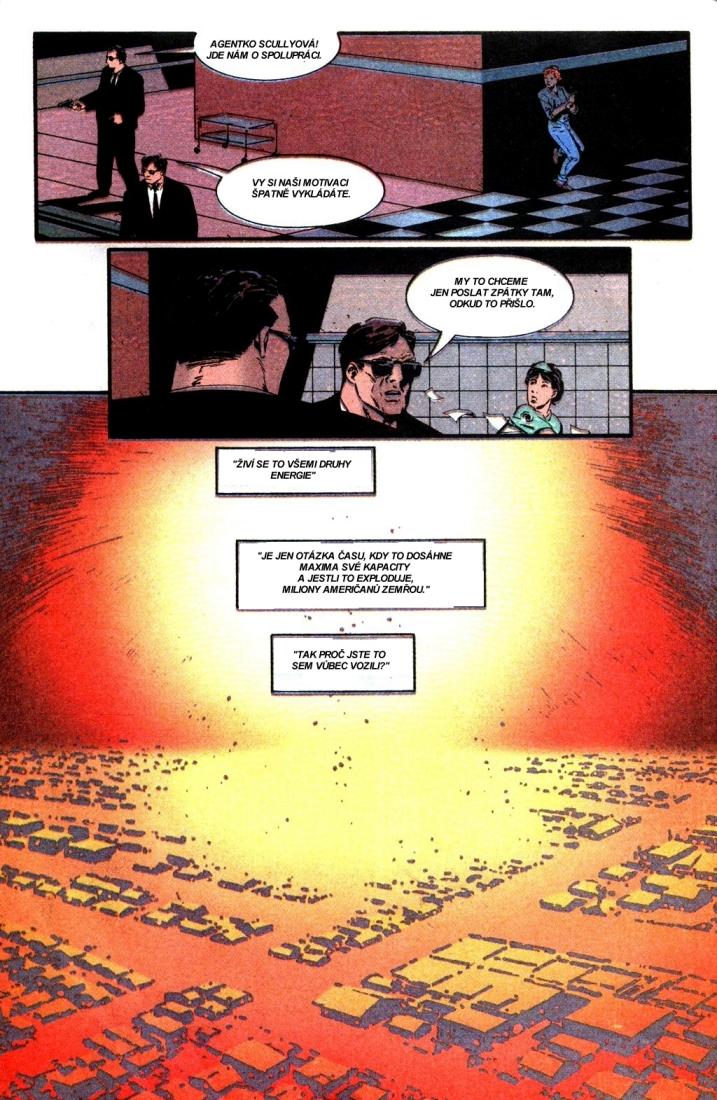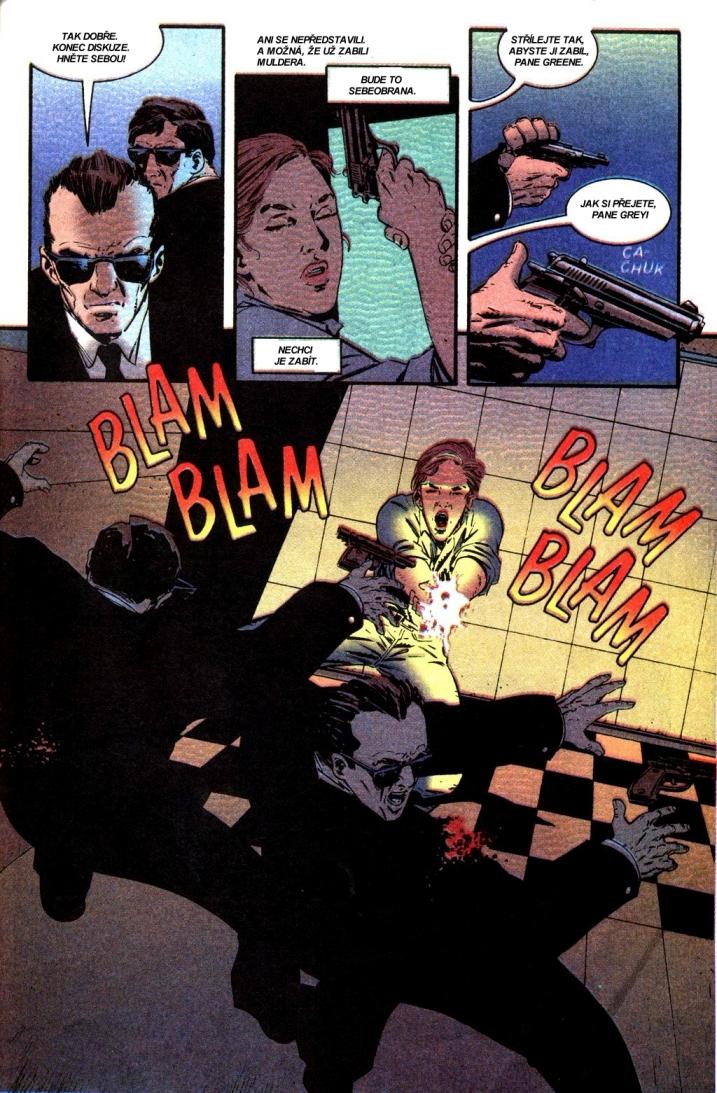 Akta X se v komiksových příbězích neobjevovala jen v devadesátých letech (prohlédněte si unikátní komiks z této doby), ale s novým filmem přichází tento typ umění do světa Akt X i v roce 2008. Níže vám nabízím 4 ukázky z prvního dílu The X-Files #0. Recenzi s hodnocením 8.6/10 si můžete přečíst na serveru ign.com. Za zmínku stojí také pěkná reportáž serveru ew.com, který už před několika týdny nabídl exkluzivní pohled na prvních pět stran komiksu – první, druhá, třetí, čtvrtá a pátá. A o co že v nových komiksech půjde? Frank Spotnitz, který pracuje na jejich příběhu, se v minulosti vyjádřil, že děj bude zasazen do období 2. až 5. série a krom Muldera a Scullyové v nich vystoupí i Osamělí střelci a Walter Skinner. Ještě o něco zajímavěji se jeví informace, že následující vydání by se měla zaměřit na mytologii z tohoto období, přičemž objevit by se měl Syndikát i Kouřící muž a dle Frankových slov by další komiksy měly seriálovou mytologii dokonce nějakým způsobem prohloubit. Uvidíme, jak to nakonec dopadne; Frank Spotnitz úzce spolupracoval na mytologii s Chrisem Carterem již od 2. série, takže půvabné komiksové knížečky jsou jistě v dobrých rukou.