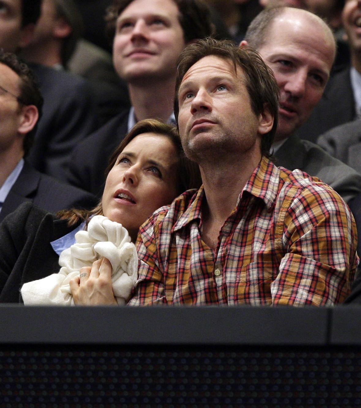 Tedy, lépe řečeno: na basketu koukají na výsledkovou tabuli. David Duchovny, který je nadšeným fanouškem basketbalového týmu New York Knicks, podobné příležitosti prakticky nevynechává, ale mnohem častěji s sebou bere svoji dcerku Madelaine West (podívejte se na fotky z minulého i letošního roku). Davidovu manželku Téu Leoniovou jsme za posledních pár měsíců viděli pouze na jedné filmové premiéře, která se odehrála letos v lednu. Níže si můžete prohlédnout Davida i Téu na basketbalovém zápase v newyorské Medison Square Garden, který se hrál v pondělí 28. února 2011. Manželský pár si naposledy vyrazil loni v září na tehdy probíhající US Open. Při té příležitosti si oba popovídali s československou rodačkou a slavnou světovou tenistkou Martinou Hingisovou.