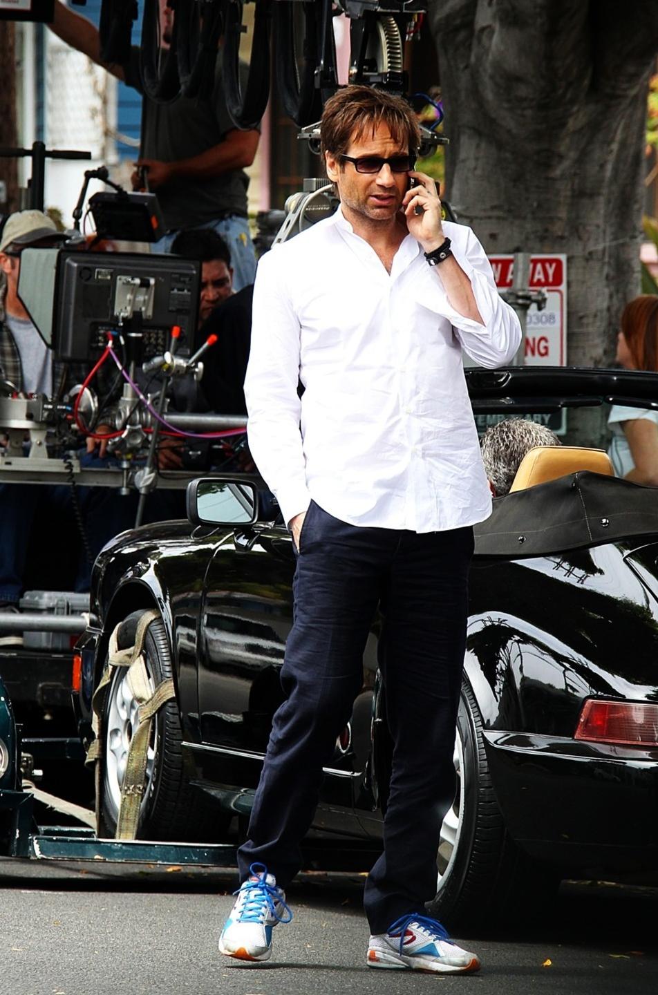 Ze seriálu Akta X známe několik příkladů, třeba epizody The Unnatural či William, které potvrzují, že David Duchovny je vynikajícím režisérem, v jehož hlavě vzniká řada originálních nápadů. Při natáčení seriálového hitu Californication, který je vysílán od roku 2007, zasedl na režisérskou židli už dvakrát: u první epizody druhé série a u první epizody třetí série. U chystané čtvrté série tradici porušil, protože režíroval epizodu druhou. Ta bude vysílána přesně týden po té první, tedy v neděli 16. ledna 2010. Níže si pak můžete prohlédnout dvě starší fotografie, které Duchovnyho zachycují při natáčení dvou různých projektů. Na fotce vlevo herec telefonuje na placu první série Californication v roce 2007, na fotografii vpravo pak telefonuje při natáčení dramatu House of D, které napsal i režíroval v roce 2004.