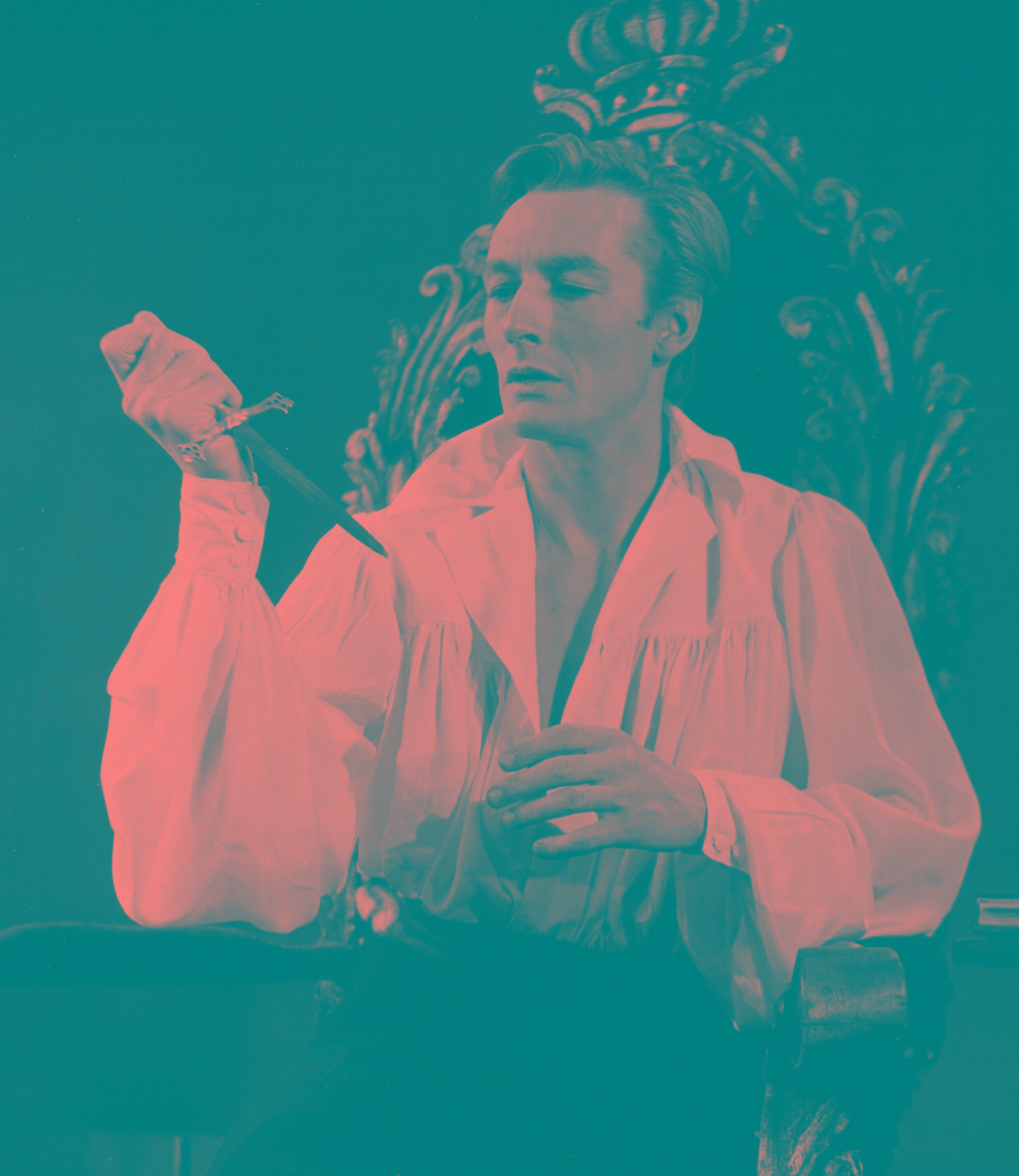 John Neville a Judi Denchová při hře Hamlet (londýnské divadlo The Old Vic, 1957)