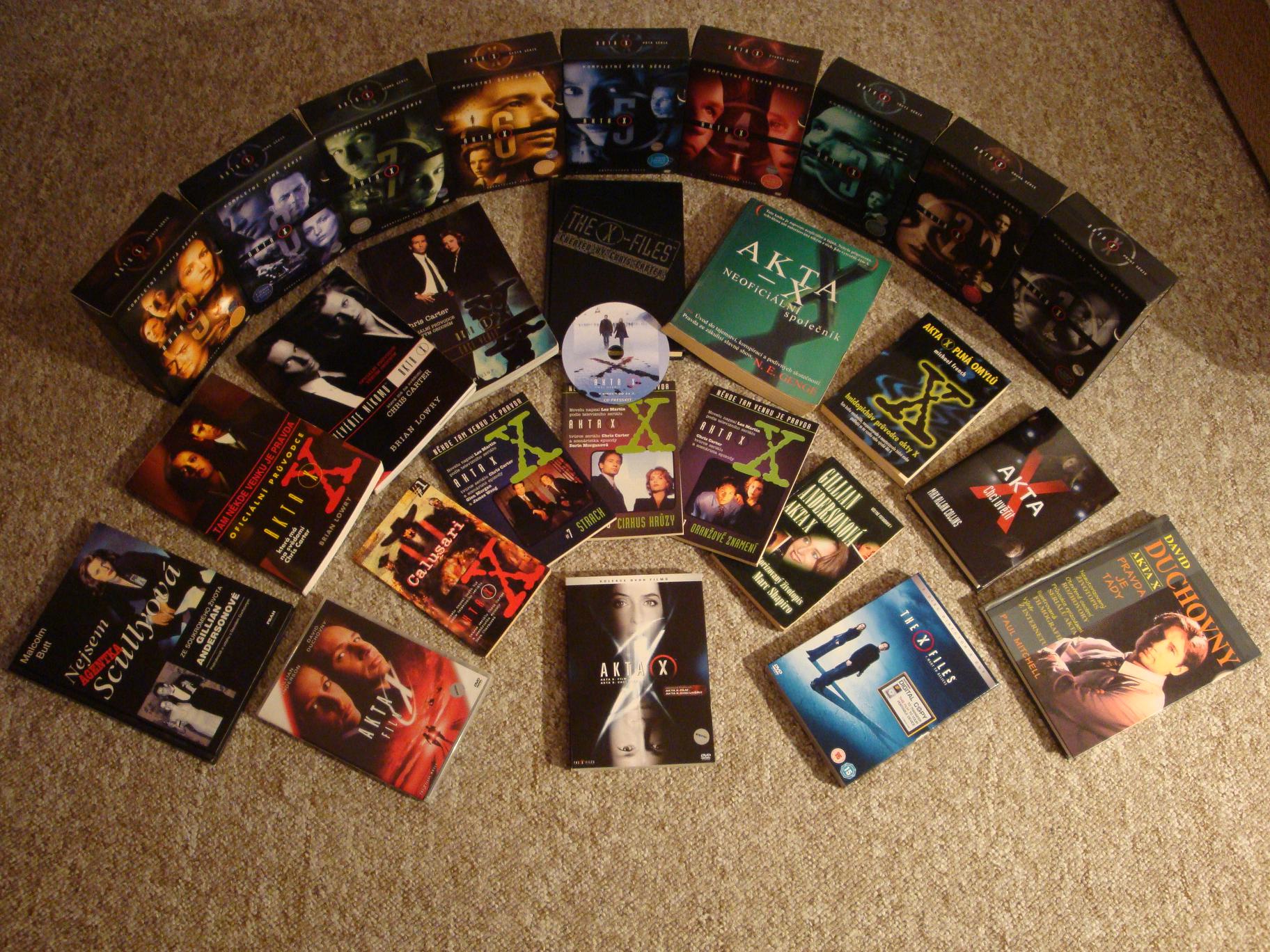 U mě by půlku z těchto knížek dělal tištěný materiál a sbírky kolekcí zase vypálená DVD. Jediné čím se mohu pochlubit je knížka The complete X files:behind the series, the myths and the movies. Až to někdy dám všechno dohromady tak to možná nafotím