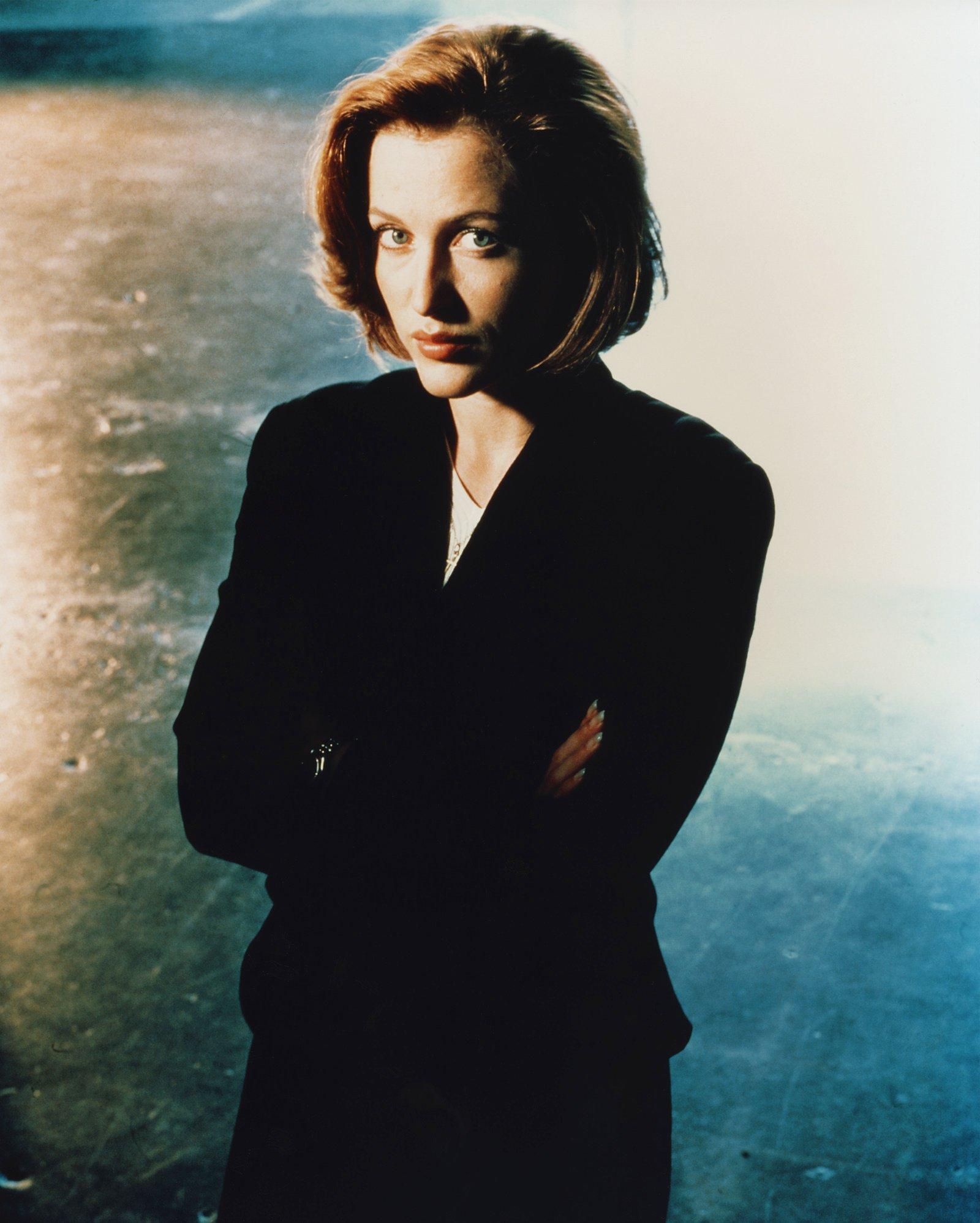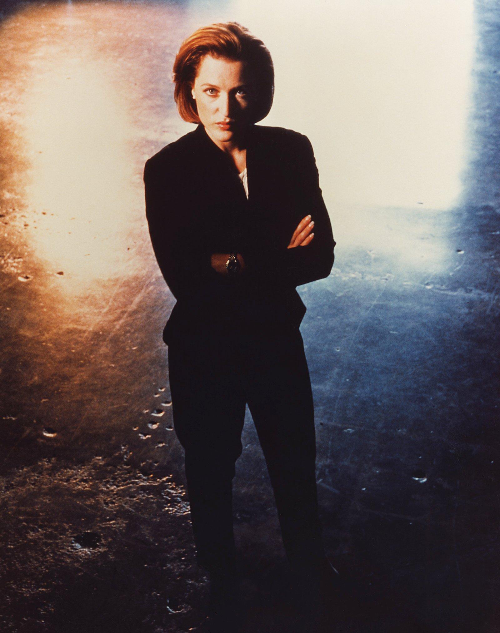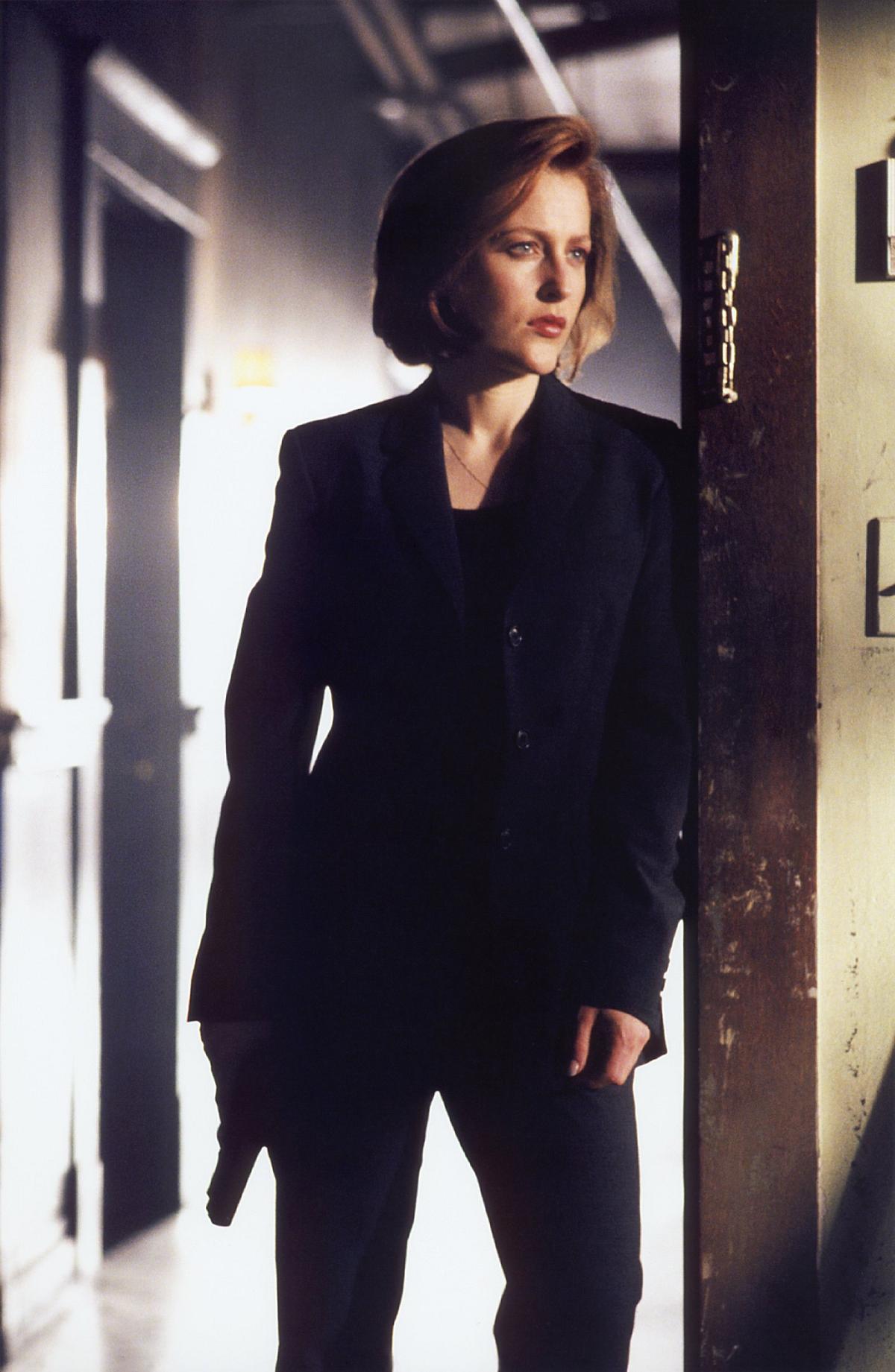Na fotkách z tohoto období je to podle mně nejtypičtěkší Scullyová – vlasy zastřižené těsně po bradu, zrzavé, vyfoukané dovnitř, výrazná rtěnka a tmavý kostýmek. Myslím, že když se řekne „Scullyová“, většina lidí si vybaví právě takový vzhled. Sluší jí to moc!