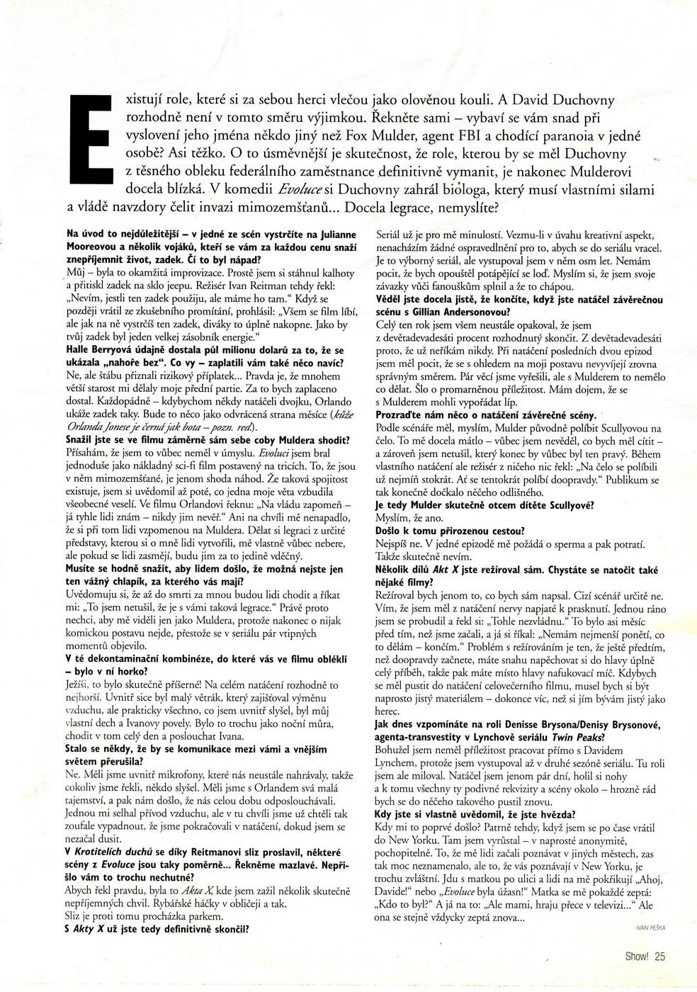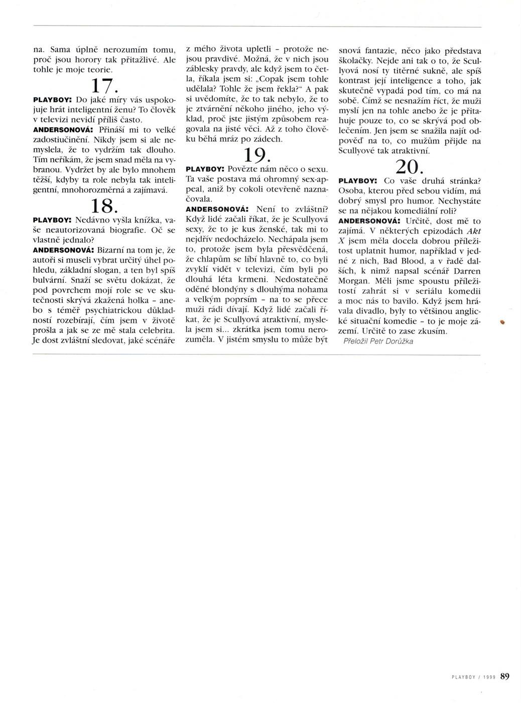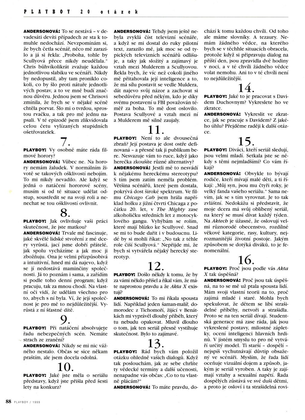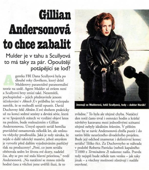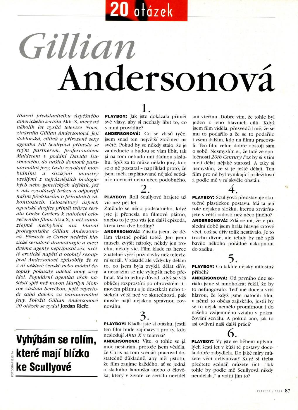 Nattynax nám zaslala některé zajímavé scany, které jsou dnes spíše už historické, o to vzácnější pro nás však jsou. Tentokrát se jedná o rozhovory s Gillian Andersonovou z magazínu Playboy (z červencového vydání české mutace z roku 1999) a s Davidem Duchovnym z časopisu Show! z roku 2001. Ze stejného časopisu a stejného roku pak pocházejí i dva zbylé scany, které obsahují menší články o Davidovi a o Gillian. Nattynax tímto mnohokrát děkuji, už v minulosti několikrát poskytla zajímavé scany z časopisů, konkrétně zde a zde. Celou řadu dalších scanů si můžete prohlédnout v příslušné rubrice.