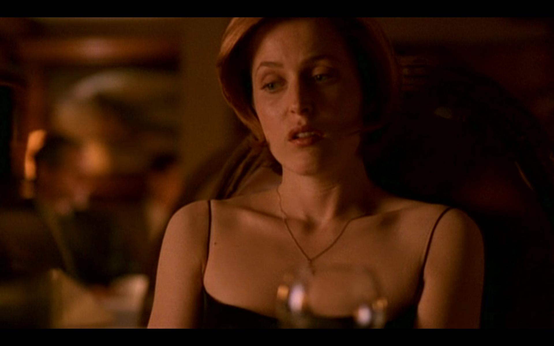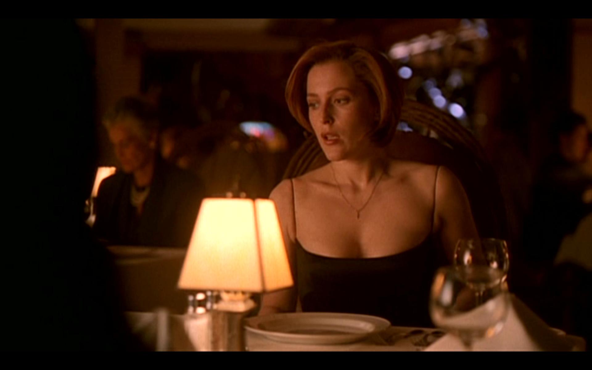 Epizoda En Ami nabízí celou řadu zajímavých scén. Krom několika zásadních odhalení je to především rande agentky Scullyové s Kouřícím mužem, během kterého si Gillian Andersonová oblékla doslova úžasné večerní šaty. Nuž, posuďte sami… ;)
