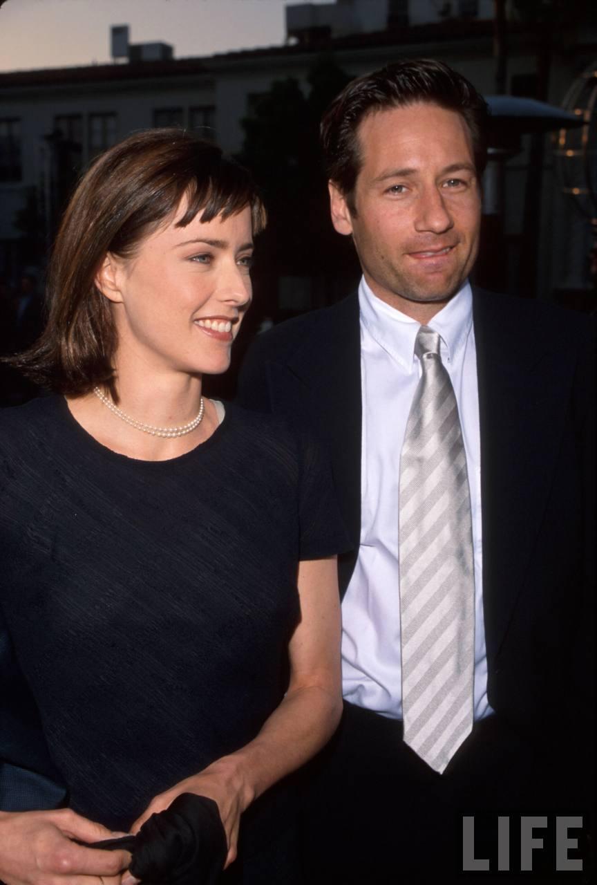 Téa Leoniová je první a jedinou manželkou Davida Duchovnyho. Narodila se 25. února 1966 pod dosti strašidelným jménem Elizabeth Téa Pantaleoni, mnohem známější je však její herecké jméno, které vidíte v titulku. Její matka se jmenuje Emily, je expertkou na výživu a pochází z Texasu. Otec se jmenuje Anthony, pracuje jako právník a má italské a polské kořeny. Ačkoliv Téa do světa filmu spadla až v roce 1991, ve světě showbyznysu, konkrétně v oblasti modelingu se vyskytovala již mnohem dříve (např. zde si ji můžete prohlédnout na titulní stránce časopisu Ultra Sport z července 1987). V její filmografii nalezneme některé velké tituly z kategorie AAA, např. akční hity Bad Boys, Deep Impact a Jurassic Park 3, nebo komedie Flirting with Disaster, The Family Man a Fun with Dick and Jane, kde jejími hereckými partnery byli např. Will Smith, Jim Carrey či Nicolas Cage. Téa se s Davidem seznámila na jaře 1997, tedy přibližně rok poté, co Duchovny ukončil svůj vztah s Perrey Reevesovou. Tentokrát už však herec nechtěl odevzdaně čekat na rozchod, a tak již v úterý 6. května 1997 zazvonily svatební zvony. Připomeneme-li si jistou konzervativnost Duchovnyho osobnosti, je rozhodně překvapivé, že ke svatbě došlo po pouhých dvou měsících vzájemné známosti. Nastaly těžké časy – tedy alespoň pro fanoušky Akt X.